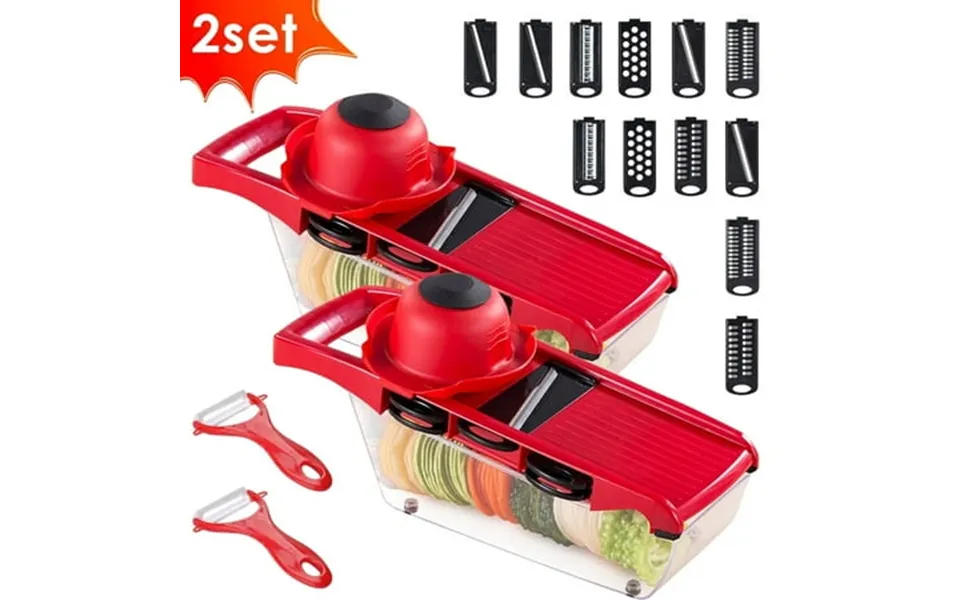 Detailed description: specifications: product name: multifunctional vegetable choppers material: material: abs stainless steel blade pc function: slice shredded grinding cutting parts list: style 1 1 set or 2 set 6 x blades 1 x main body 1 x hand guard 1 x pc container set key features: 6 blades options: different blades let you cut vegetables and fruits. Food can be cut into different thickness of silk and slices.It can also grind garlic ginger. Hand-guard covers: humanized design about the onion chopper slicer can help protect your hands when working. Drain basket: with the drain basket design you can filter the extra vegetables water to the containers of the choppers space-saving no mess very convenient to use. A good kitchen helper: ideal for cutting tomatoes peppers carrots tomatoes beets cucumber onions garlic and celery. So functional vegetable chopper for cooking lover. Note: 1. Please be careful when assembling or disassembling since the blades are ultra sharp. No mess losing and damage. 2. Please don t let the blade dip into the water for long time when washing. For avoid rusting please keep it dry after you clean the vegetable chopper. 3. Please make sure the fruits and vegetables are smaller then the blades frame when using the dicing blade. 4.Please peel the skin first for vegetables and fruits with hard skin. 5.There may be slight differences between the picture and the actual color of the commodity. We will try our best to show you the exact color. 6. Pleas...