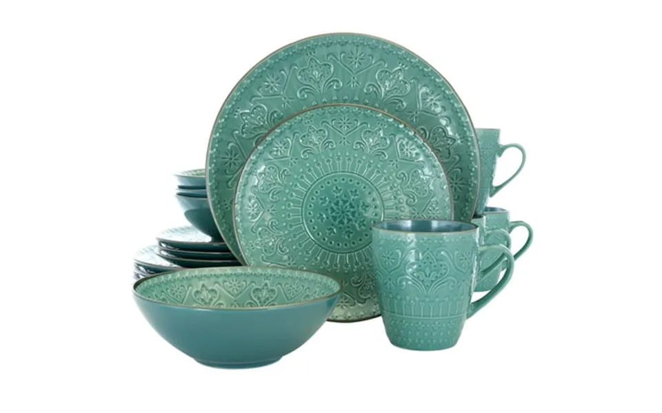 Freshen up your table setting with the textured sea foam 16 piece dinnerware set by elama. With a calming tone of sea green and textured...show more