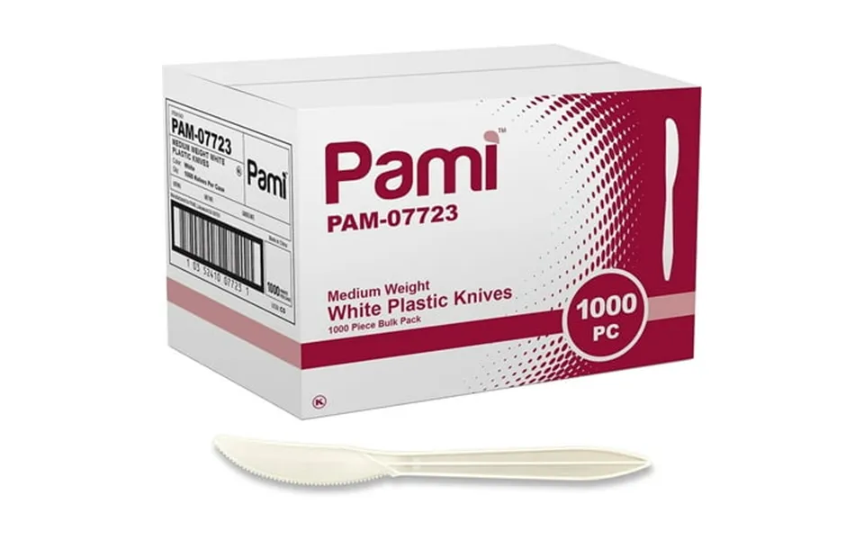 Enjoy your meals with the utmost comfort and reliability. These disposable plastic knives are your ultimate choice for practicality sturdiness and unbeatable value in dining and catering settings. Crafted from quality and durable material these plastic knives are designed for strength and reliability. You can trust these plastic utensils to handle all types of foods without bending breaking or causing any annoyance. They are ideal for any course from salads and fruits to meat dishes pasta and desserts ensuring you can enjoy your meals with the utmost comfort. Experience convenience with these pami disposable plastic knives our generous packaging includes 1000 plastic knives in each box so that you have more than enough for any occasion. Whether you re hosting a gathering or party doing charity meals food catering and more this pack of plastic cutlery is a smart budget-friendly solution to serve a multitude of guests. Because this plastic silverware is medium-weight anyone will be able to use it with ease and comfort including kids and the elderly. Confidently serve your guests with only the best disposable cutlery for any occasion this plastic knife pack comes in a classic white color that enhances any table setting making it perfect for parties or elegant dinners. Our disposable silverware is also disposable and 100% recyclable for much easier cleanup so that you can enjoy more of your party. Elevate your dining and catering experience. Add these pami disposable plastic ...