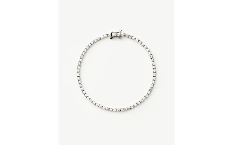 The ultimate luxe layer, this everyday silver bracelet is embellished with cubic zirconia. Let it shine solo or stack with delicate chains. Each individual piece in our tennis collection takes 24 hours to craft by hand.. How to open & close the clasp. Secure your bracelet by inserting the tongue into the clasp until there's a 'click' sound, then clip the arms down on both sides of the clasp. In order to take off your bracelet, unclip the arms and pull away from the sides of the clasp. Release the tongue by pressing the button.. Metal: rhodium plated on recycled sterling silver. Gemstone: cubic zirconia. Gemstone dimensions: 2mm. Chain width: 2.5Mm. Chain height: 2.35Mm. This bracelet is a fixed length and can't be adjusted. If you prefer a looser fit, we recommend sizing up.. S. Total length: 160mm. Fits wrist size up to 160mm. Weight: 5g. M. Total length: 180mm. Fits wrist size 161mm to 180mm. Weight: 5.8G. L. Total length: 200mm. Fits wrist size 181mm to 200mm. Weight: 6.6G. Product code: te-s-b1-cz