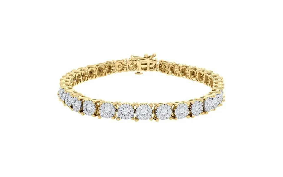This beautiful one row brilliant round cut stones are 100% genuine natural diamonds of great clarity & color. This round diamond cluster bracelet has a solitaire look to it. This is a new type of flower setting where there is one large diamonds in the center and it is surrounded by smaller round diamonds on the outer border. The diamonds are so close together it has an amazing shine and a real solitaire look. It cost fraction of what big solitaire diamond bracelet would cost in this size and shape. Round diamonds are in prong setting and this bracelet mounting is set in real 14k yellow gold. This bracelet is very unique and versatile. It can be worn around town or to any special occasion. **Measurements are given above the product description.** **Comes with presentation box & jewelry for less appraisal paperwork.**