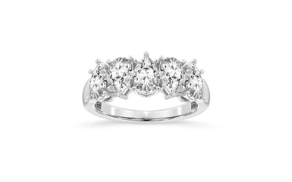 A breathtaking anniversary band featuring five dazzling reverse set pear stones in a five claw prong setting amid a plain slight dome shank tapering towards...show more
