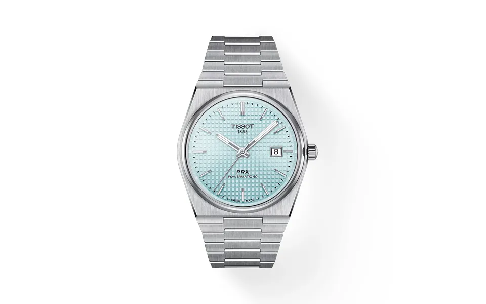 If you are looking for a fine watch with an authentic 70's touch, don't look any further, the prx powermatic 80. Created for those who have an eye for design and rich in features of the twenty-first century in a case tissot of 1978, the prx is a must in the wish list of every watch enthusiast. The powermatic 80 self-winding movement offers reliability and precision thanks to the innovative nivachron spiral. With 80 hours of power reserve, it is a modern movement designed to keep up with a hectic lifestyle.Clock informationsku:t1374071135collectiont-classicweight g 138,00warranty2 years warrantycountry of production case and glasslength39,50width40,00often10,93 12.00Water resistancewaterproof up to 10 bar 100 meters 330 feet form of the casetonneau shapecase material316l stainless steel casecashier optionshairdresser at sightglassanti-scratch sapphire crystal with anti-reflective treatmentmovementenergyautomaticmovementswiss, automaticpower reservepower reserve up to 80 hoursfunctionsspiral in nivachroncalibre11 1 2. Caliber diameter mm 25,6cosc certifiedno.Dialcolor of the dialblue iceindexindexluminescent material on handssuper-luminova strapstrap chain referencet605046447details of the strapstainless steelcolour strapgreybucklebutterfly closure with buttons, quick release interchangeable braceletbracelet optionsquick release interchangeable braceletreference knitt6130465
