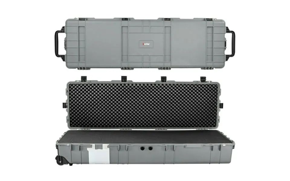 The eylar 57 inch mil-spec elite protective long rifle hard case is designed to secure your rifles for transport or storage. Two low profile reinforced solid roller wheels allow quick and effortless transport of the heaviest loads. Check rifles safely with tsa on flights as we have designed this case to meet tsa s strict requirements for firearm transport on airplanes in the usa tsa luggage lock fittings . Two folding crushproof drag handles for rolling and 2 person hand carrying. Injection molded from reinforced high pressure polypropylene plastic that is waterproof and crushproof. Adaptive pressure equalization valve to release built up air pressure allowing for atmospheric compensation when transported at high low altitudes and within cargo vacuums. A waterproof seal is formed when the case is latched closed applying pressure to a rubber gasket that is molded to the perimeter of the case. Ip67 fully submerged waterproof protection for up to 1 meter. Resistant to extreme heat and freezing cold with a working temperature range of -20 f -29 c to 140 f 60 c . This hard gun case comes with 4 layers of foam designed to keep your valuables and rifles firmly in place 1 fully customizable pull & pluck cubed foam layers 1 solid foam layer 1 solid bottom pad layer and 1 layer of egg-crate foam padding for the lid. Six press & pull snap latches secure the full length of the 57 inch long case. Fit up to 3 long rifles securely with a deep inner storage area of : 54.58 X 15.58 X 8.63...