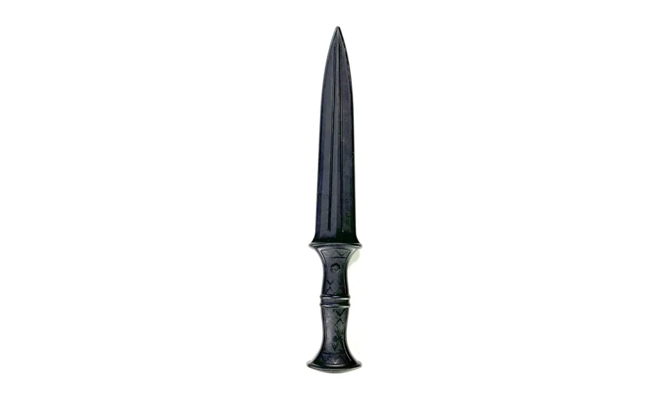 High quality polypropylene rubber spear pointed dagger with geometric patterned handle. The knife tip is slightly bendable making it safe for direct contact with actors....show more
