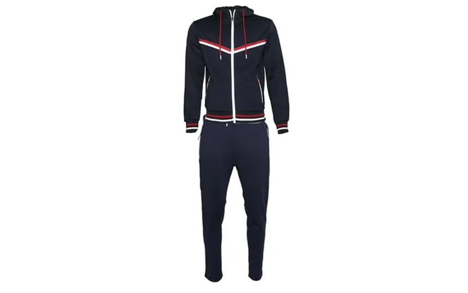 Mens athletic tracksuit set 2-piece zip up jacket jogger pants navy red white xl