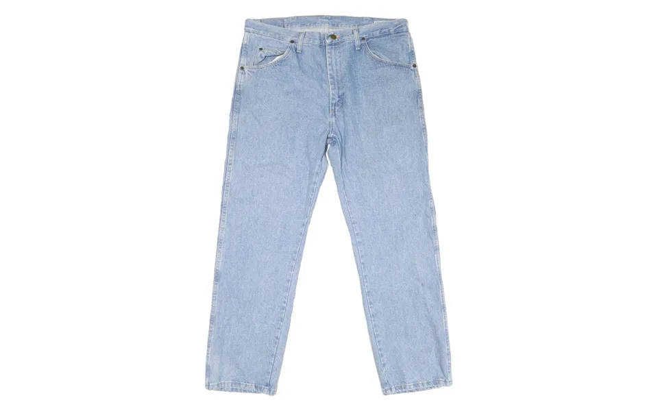 These wrangler mens jeans feature a light blue denim colour with a classic five-pocket design. The front has slightly faded areas that add a subtle vintage effect, while the back displays wrangler's signature branded patch on the waistband. They fasten with a zip closure and metal button.. Crafted from a comfortable cotton blend, these jeans offer a regular fit and straight leg style suitable for everyday wear. The fabric combines durability with softness for lasting comfort and casual style.. Wrangler has a long history of producing rugged and reliable denim wear, beloved for its workwear roots and classic american style. These jeans uphold that tradition with a versatile and timeless design ideal for various casual outfits.