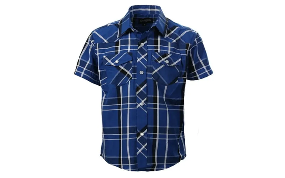 Gioberti boys casual western plaid pearl snap-on buttons short sleeve shirt royal blue white black : size 8