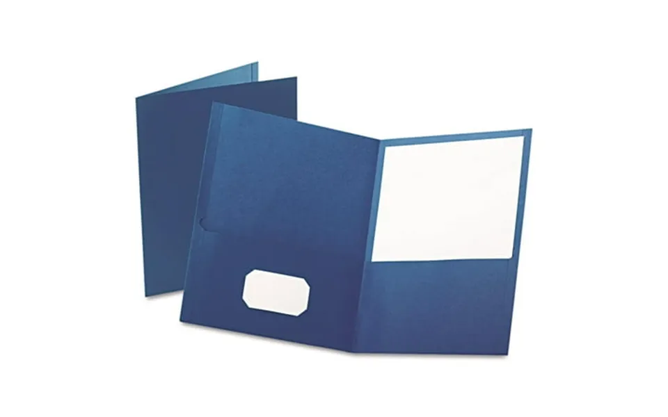 Oxford two pocket folders provide easy color coded organization for home and school whether that s in the classroom or a virtual learning environment. The subtle textured paper on the folder reduces marks and smudges so they stay looking new longer. Each folder with pockets holds up to 100 sheets of letter size paper plus smaller printouts won t fall out of the enclosed pockets. Great for students to organize handouts and teachers to organize student work. Schools can customize these two pocket folders with the die-cut business card holder for new student packets. Traditionally found on school supplies lists pocket folders have plenty of uses: tax and small business organization receipt storage and home project tracking. Back cover color s : blue brad prong tang fasteners: no business card holder: inside front cover capacity text : 100 sheets capacity range max : 0.5 Color family: blue cover material s : paper stock front cover color s : blue inside pockets: one back one front quantity: 25 box sheet size: 11 x 8.5 Texture finish: leatherette grain recycled comments: paper contains 10% post-consumer recycled content 10% total recycled content.