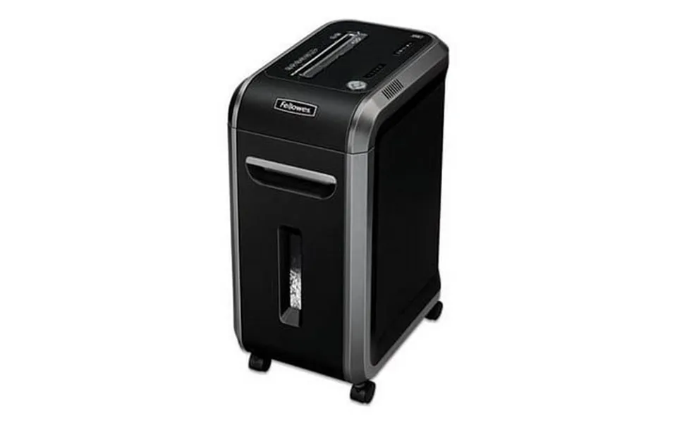 Professional cross-cut shredder provides powerful professional shredding with jam protection. The 100 percent jam proof system eliminates frustrating jams by preventing overloads and powering through tough jobs. Silentshred feature delivers ultra-quiet performance for shared work spaces. Safesense technology stops shredding when hands touch the paper opening. Energy savings system provides optimal energy efficiency 100 percent of the time during use and out of use. Shredder shreds 18 sheets per pass into 5 32 x 1-1 2 confetti particles security level p4 at 12 per minute. You can also shred staples paper clips credit cards and cds dvds. Maximum runtime is 30 minutes with a 40-minute cooldown. Sleek modern design includes an easy-to-empty 9-gallon pullout bin 65-decibel sound level 9 wide paper entry and casters for easy mobility. 99Ci jam proof cross-cut shredder is made of plastic and metal. Fellowes powershred 99ci 100% jam proof cross-cut shredder dark silver black