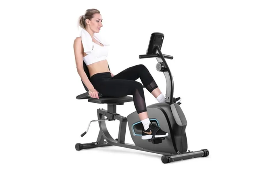 Features of the maxkare recumbent exercise bike stationary exercise equipment for home use the recumbent exercise bike ergonomically designed seat and backrest are furnished with a comfortable high-density sponge. The recumbent exercise bike with the adjustable lever it easy and convenient for you to move the seat front back achieving to customized fit for almost every user. The handles of the recumbent exercise bike are padded with vinyl foam to provide a solid grip for a comfortable workout. And this exercise bike could trace your heart rate. The recumbent exercise stationary bike with an lcd monitor displays and tracks your exercise data including time speed distance calories burned and heart rate. The recumbent exercise bike can give you a smooth and whisper-quiet riding exercise experience no worry to bother family members. The recumbent exercise bike with an ipad holder can allow you to enjoy the exercise and entertainment simultaneously. With transportation wheels easy to move the exercise bike to wherever you want. Enjoy the fun of exercise easily. The exercise bike with an 8-level magnetic resistance system customizes your workout and almost needs no maintenance. The max. Weight capacity of the exercise bike is 300 lbs. Specifications of the recumbent exercise bike model of the exercise bike: fitness goal increase cardio exercise bike maximum weight: 300 lbs assembled product weight: 56 lbs assembled dimensions: 45.7 L x 18.9 W x 41.7 H