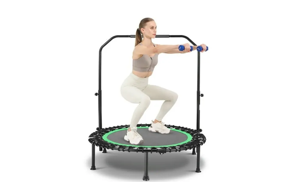 This mini rebounder with pre-assembled & quick folding design is a best choice for home gym when it is not in use you can release the locking system fold it into half to make the trampoline compact for storage. Yet the small size does not compromise the fitness effect. The magic indoor bounce exercise equals various cardio or aerobic exercise making it convenient for you to burn calorie and build strength. In addition with the adjustable handle bar the fitness trampoline is suitable for people of different heights. And 2 resistance bands included can give more possibilities. What’s more equipped with a heavy-duty metal frame the trampoline for adults can endure wild bouncing.