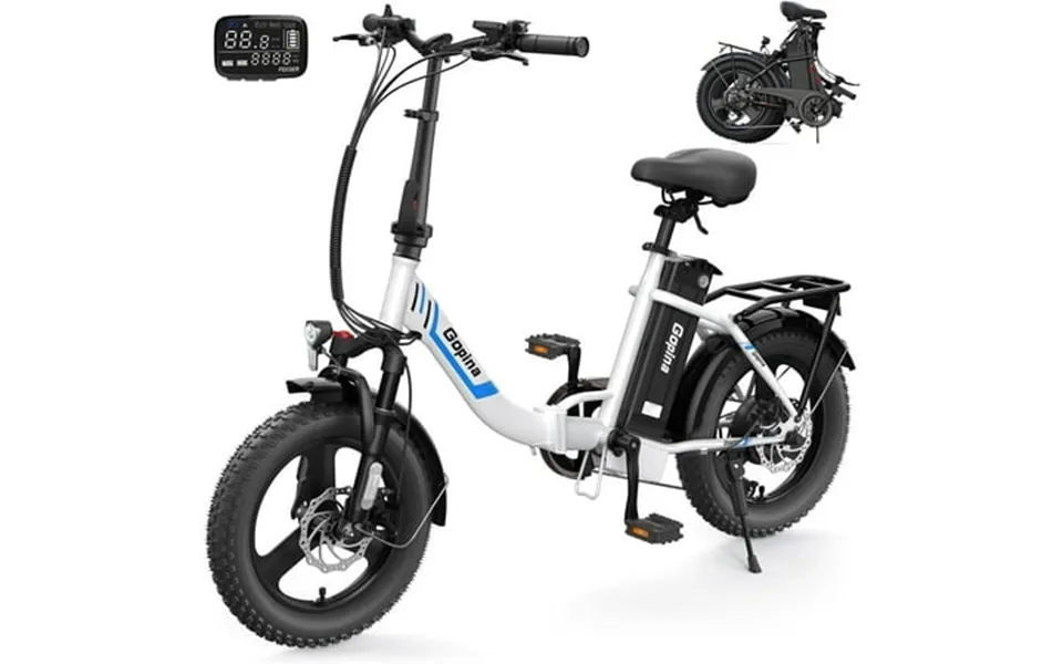 16 Fat tire electric bike 350w folding electric bike digital lcd display electric bike 374.4Wh battery electric bike 50 miles range commuter bike the vivi gopina v2 step-through designed 16 inch small folding electric bike is an electric bike suitable for commuting beach and snow. It has a 3 inch wide tire and a 48v 7.8Ah large-capacity removable battery you can ride 40-50 miles in pure electric mode and a single charge can meet your needs for a week. Your daily commutes travel and workouts will all get a boost from the strong motor and large capacity removable 48v 7.8Ah lithium-ion battery. You can adventure longer commute quicker and climb hills more easily.Choose this foldable electric bike to enhance your lifestyle and start a new experience of outdoor adventure. Main features: powerful 350w motor : the electric bike is equipped with a 350w brushless motor that maxes 20mph 50 miles with pedal assist of range. This configuration will provide you with a reliable safe and stable riding experience. 48V ebike battery : with removable 48v 7.8Ah battery can provide a cruising range of 20-50 miles. The battery is removable so you can take the battery to your home or office to recharge. Charging time: 4-6 hours. Folding and lightweight : the fat tire folding electric bike adopts a strong carbon steel collapsible frame for quick folding and easy storage. Also equipped with adjustable seats can adapt to people of different heights and weights. You can have it with minimal storag...