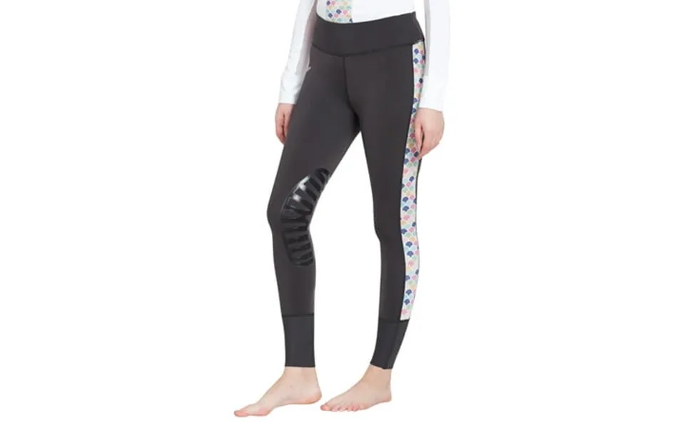 Both cute and technical the tuffrider ladies iris equicool riding tights are great for summer schooling. The fabric is a nylon spandex blend infused with our new equicool technology that offers 50 uv protection and pulls moisture away from the body. Additional features include a generous rear zipper pocket grippy silicone knee patches and contoured sock bottoms. The colorful scalloped pattern doubles as extra ventilation to ensure you stay cool and dry in the saddle. Care instructions: turn inside out and wash with warm water medium temperature and mild detergent. Tumble dry low no bleach must wash separately.