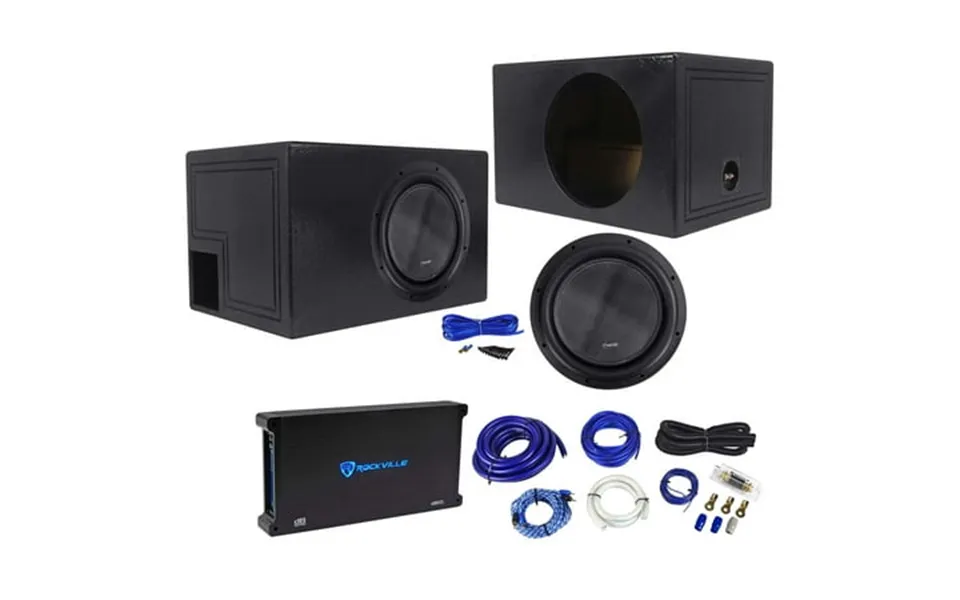 Package includes: 1 american bass 12 competition car subwoofer 1 rockville 12 qbomb vented sub enclosure box bedliner finish 1.8 Cu ft 1 rockville db15 6000 watt 3000w rms mono class d 2 ohm amplifier car audio amp 1 rockville rwk01 0 gauge complete car amp wiring installation wire kit w rca s 10 drywall wood screws wood screws are the type of screws the screws are actually made of metal 12 feet of 14 awg blue speaker wire 2 spade terminals features of xr 12 d4: american bass xr-12d4 2400w 12 competition car subwoofer 3 voice coil 200 oz rms power: 1200 watts peak power: 2400 watts fo: 35 hz impedance: dual 4-ohm sensitivity 1w 1m: 89 db frequency range: 35hz-500hz magnet: 200 oz voice coil: 3 inch mounting depth: 7.756 Inch mounting diameter: 11.614 Inch shipping dimension l x w x h : 18 in. X 18 in. X 12 in. Shipping weight: 34 lbs enclosure specifications: 2.25 Cubic feet ported 1.75 Cubic feet sealed video of db15: features: rockville db15 6000 watt peak 1500 watt dyno-certified rms mono 2 ohm amplifier car audio amp dyno certified rms power ratings: certified dyno test less than 1 % thd use these ratings when comparing with top brands such as kicker rockford fosgate etc