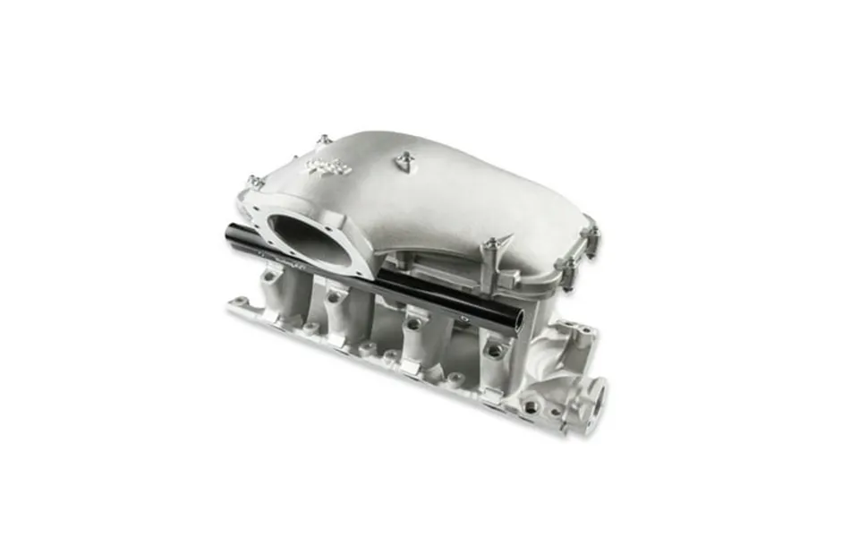 Compatible with 8.2 In. Sbf ford hi-ram intake manifold with 105mm 1986-95 ford 5.0 Throttle body flange side mount top. The efi hi-ram manifold line has a new addition for the 8.2 In. Sbf ford application. This manifold comes with a 105mm 1986-95 ford 5.0 Throttle body flange side mount top. The runner length and tapered cross section design will perform well for a wide range of engine combinations. The engineering team also redesigned the water crossover passage to allow room for distributor phasing. Aggressive bold race-bred styling will make bad intentions clear for drag race muscle car marine off-road sandrails pulling trucks track street-rod applications and more manifold is designed for a 8.2 In. Deck height. -Runner length and the tapered cross-section designed to perform well for a wide range of engine configurations -efi fuel rails are machined for -8an o-ring fittings with passages large enough to accommodate high fuel flows and dampen pressure pulsations in the fuel system and come standard with efi hi-ram kits. -Cast aluminum construction. *** A low profile distributor will be needed when using this manifold. Holley has a sniper hyperspark version 565-322 and a holley efi dual sync 565-211 available.