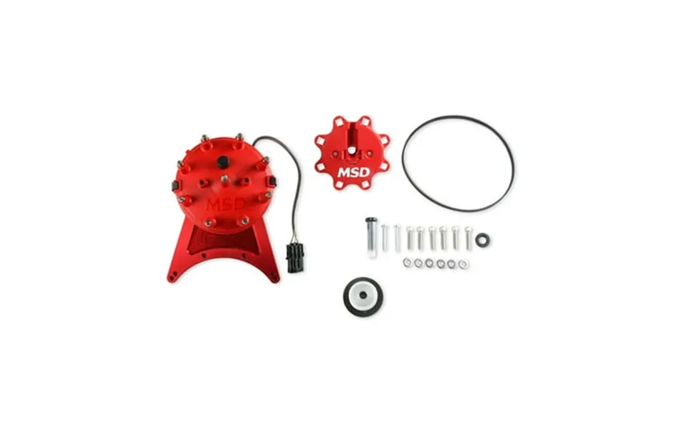 Compatible with big block chevy . This product is not created or sold by chevy . Front drive distributor with adjustable hall-effect cam sync sensor ideal for triggering efi systems. Msd s pro-billet front drive distributor with adjustable hall-effect sync pickup is the solution for race engines that don t have room for a standard distributor due to firewall clearance or intake combinations and need a cam sync signal for efi systems. The msd front drive distributor is belt-driven from a pulley installed on the camshaft. For increased strength and durability a 9mm belt is used which is wider than any other drive assembly. The distributor head is cnc-machined from a billet of aluminum and is secured to a strong precision bracket. An adjustable hall-effect sensor provides a clean cam sync signal for efi systems. The sensor has a built in led used for quick easy setup and adjustments. This system is an extremely accurate way to distribute the spark energy from your msd ignition