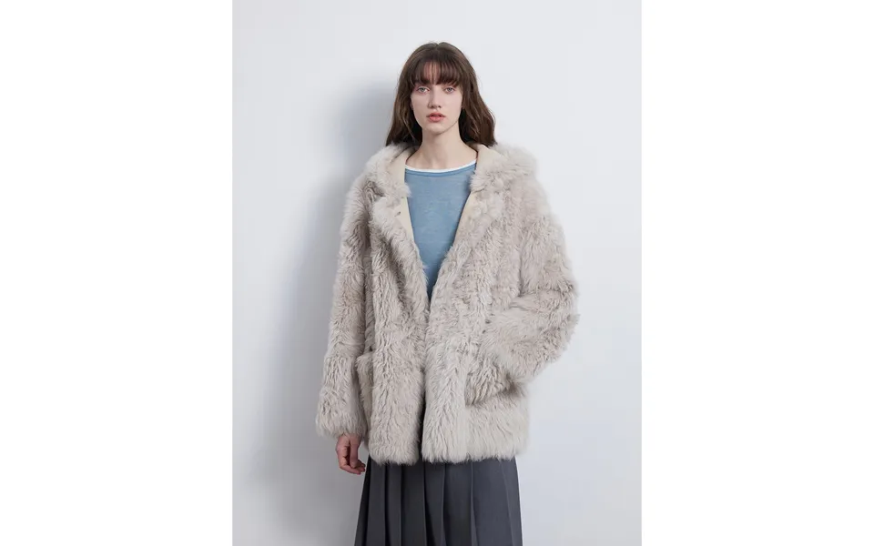 Warm and wearable, casual hooded one hand long coat. Imported italian tuscan half roll wool a chic fall winter inspiration. The natural tuscan half-curl fur...show more