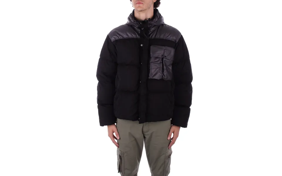 Giubbotto con cappuccio uomo cp company logo su cerniera chiusura con cerniera e bottoni frontale due tasche laterali e una frontale altezza modello : 1.83...show more