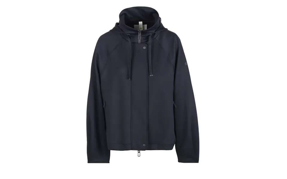 450843 Blue Giacca in tessuto tecnico. Collo alto con coulisse. Cappuccio. Maniche lunghe con pinces al fondo. Chiusura frontale con zip e bottoni a pressione.Tasche...show more