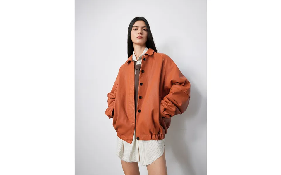 Personalized miu style runway edition jacket leather coat heavy-duty vintage wash waxed sheep leather with high saturation colors, reflecting the beauty of modern fashion. Drawing inspiration from the diverse and rich aesthetics of luxury brand runways, this piece extracts high-saturation colors that perfectly align with the vibrant energy of the winter-to-spring transitional season. Crafted from new zealand imported waxed vegetable-tanned sheep leather, it offers a delicate and smooth touch. Combined with a relaxed jacket silhouette, it provides a comfortable and effortless fit, while the elastic hem ensures the garment is loose yet not slouchy, offering a flattering and inclusive shape. Fabric the leather undergoes vegetable tanning first, followed by an oil-wax treatment, which creates a natural waxed effect. Over time, the leather will develop charming scratches, creases, and a patina with traces of wear, creating a unique, time-worn color pattern.
