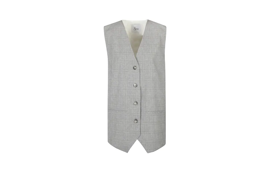 450704 Grey Gilet in principe di galles. Scollo a v. Smanicato. Chiusura frontale con bottoni. Pinces sul retro. Due tasche frontali a filetto. Taglio dritto....show more