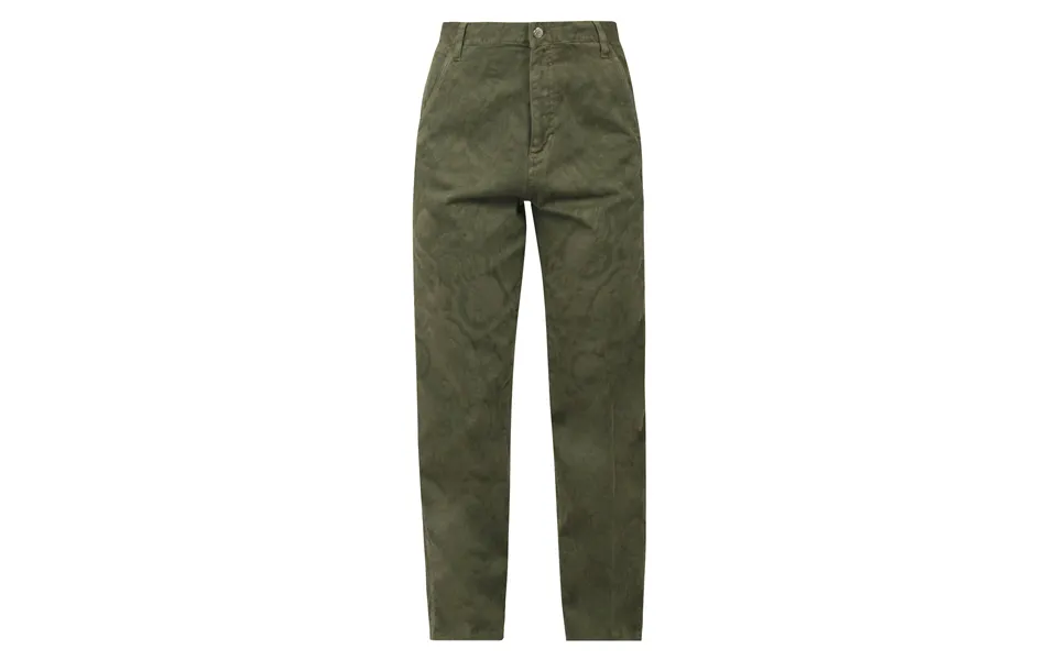 451279 Verdone Pantaloni in drill. Vita alta. Passanti per cintura. Chiusura frontale con bottone logato e zip. Due tasche laterali alla francese. Tag con logo...show more