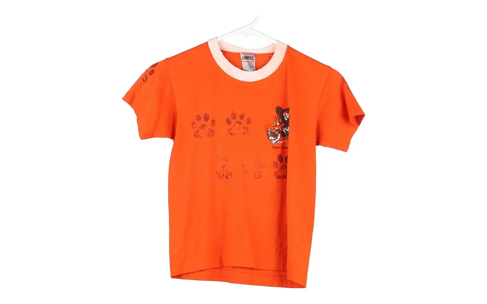 Description:vintage age 8-10 orange oneita t-shirt, fits medium.Gender: girls. Condition: good Several stains on front and back.. Style: t-shirt. Era: 1990s. Colour: orange. Fabric: cottonnotes:...show more