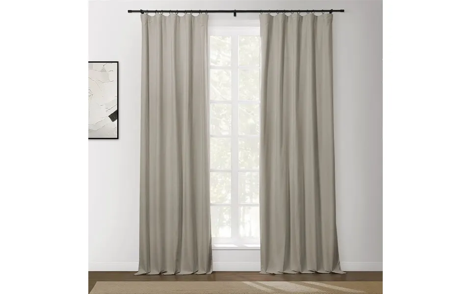 Enjoy uninterrupted rest with the twopages lila blackout drape elegant, heavyweight beige blackout drapes that block light completely, even in light colors. With refined pleats and full coverage, these twopages blackout drapes create a serene, stylish retreat in any room. Specification: material: 100% polyester weight: 280 gsm heavyweight fabric width: 112 inches bottom hem: 1.5 Inches for enhanced light-blocking properties, consider the puddle length heading style: 4-in-1, back tab, rod pocket, flat hook, and tab top sold individually: per panel washing method: b standard shading rate: 100% key features: total blackout coverage: twopages lila blackout drape blocks 100% of light even in white and grey ideal for bedrooms and nurseries, they help create a restful environment day or night. Lighter feel, full effect: smooth, heavyweight fabric offers full blackout without the bulk of traditional drapes. Effortless modern style: clean lines and graceful pleats deliver a refined, minimalist look with maximum function. Tips to reduce light gaps, use wider panels and mount above and beyond the window frame. Lengths vary by 1 due to handcrafting. Slight color variations may occur due to dye lots. Curtain hooks included the 4 in 1 needs metal pin hooks and the flat hook needs adjustable plastic hooks . Curtain rings and rods are not included. View our instructions on how to install 4-in-1 soft top curtains.