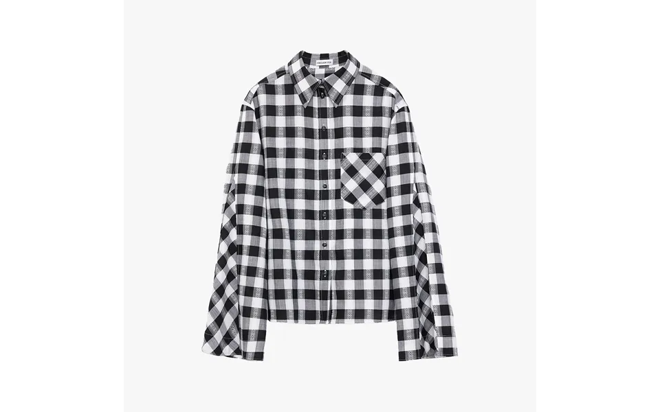 Style Diary Tencel Acetate Jacquard Check Dropped Shoulder Shirt - Black And White Acetate Grid S