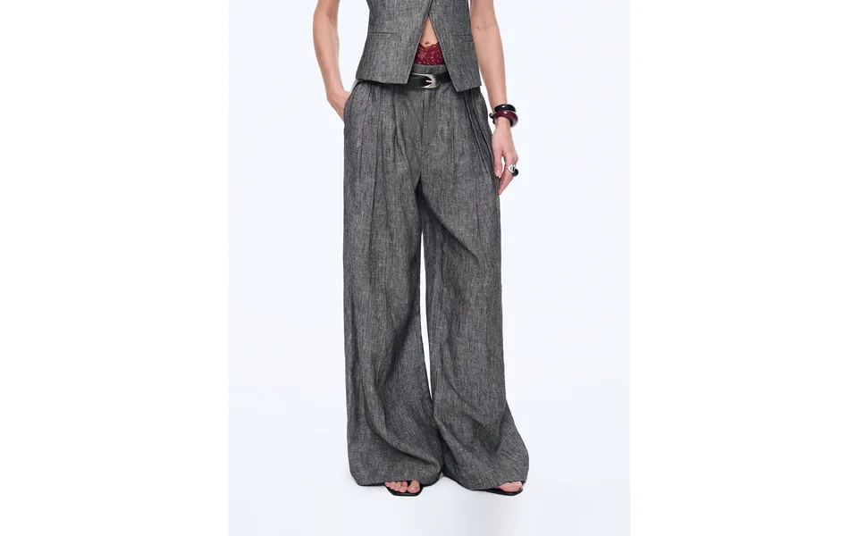 Old Money Space Linen Draped Vest And Straight Trousers Suit - L Denim Gray-pants see the best price
