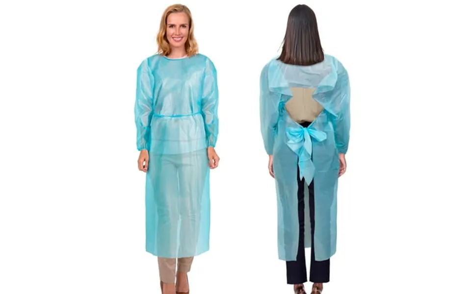 Medical disposable gown 45: pack of 25 isolation gowns disposable is intended to use in low-risk areas. Disposable gowns medical are made of 1 mil polyethylene. Surgical gowns disposable have cuffs and double tie backs. Isolation gown fits any body shape as its waist circumference is 43. Versatile medical gowns: pp gowns disposable is widely used. Exploit medical gown when doing general operations or transporting patients. Disposable lab coat is good for laundry or housekeeping. Surgical gown disposable is excellent for your butcher shop or deli. Protective surgical gowns: our disposable long sleeve gowns improve barrier performance. Medical ppe gown disposable will protect both you and your patient. Comfortable disposable hospital gowns: disposable medical gown is lightweight. With our medical gowns disposable long sleeve you can move freely and focus on important task. You ll hardly feel protective gown disposable when working. Fluid isolation gowns: ppe gowns disposable bulk repel water and oil-based liquids so in our lab coat disposable you and your clothing will be dry. Use disposable gown medical and be sure that nothing will distract you during doing your job.