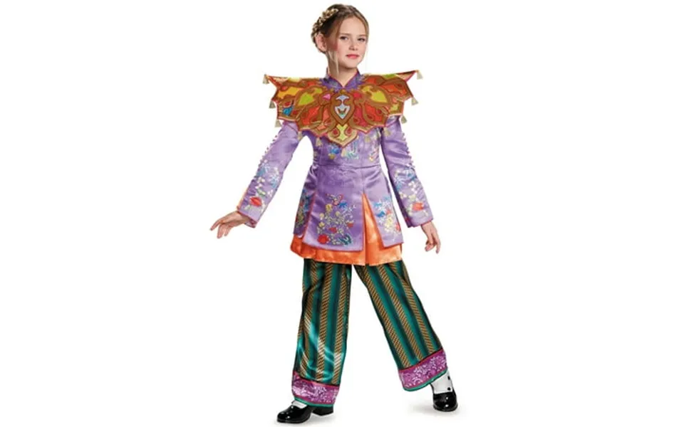 When the day becomes the night and the sky becomes the sea when the clock strikes heavy and there s no time for tea. And in our darkest hour before my final rhyme she will come back home to wonderland and turn back the hands of time. This alice costume will have you teaming up with the mad hatter and his friends once again to stop an evil time catastrophe. This costume includes pants zippered tunic and collar all style like alice s asian themed dress from the movie alice through the looking glass. This is great on its own but could be even better with the other costumes and accessories available in our store