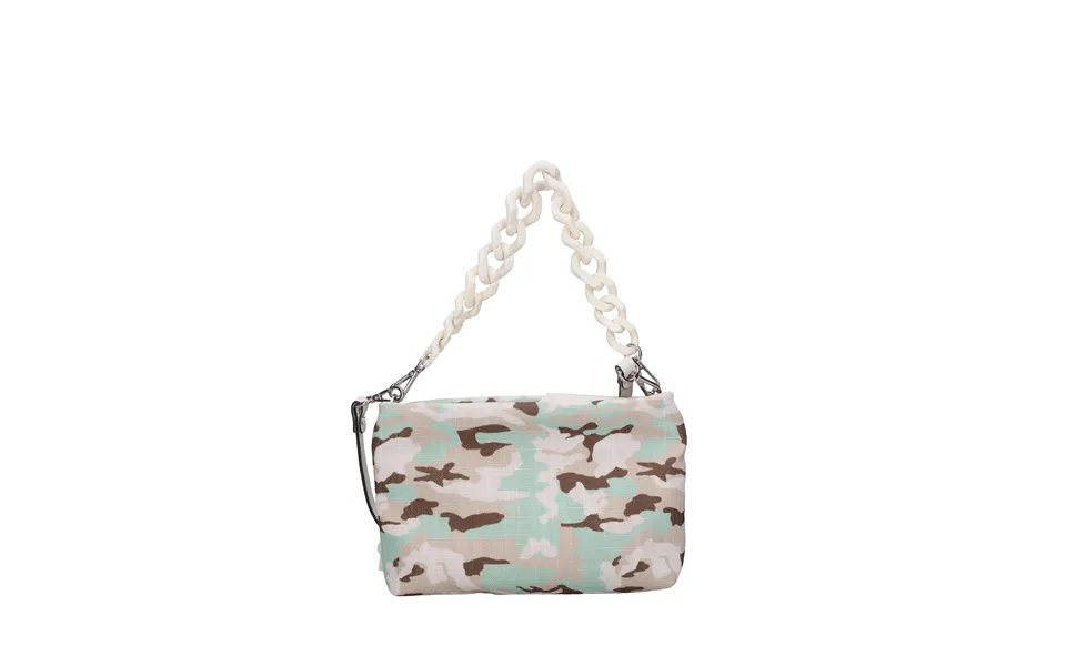 Fabric bag. 1 Compartment. Zip closure. Adjustable and removable ini leather shoulder strap. Removable cream chain handle. Shipped on transparent bag.