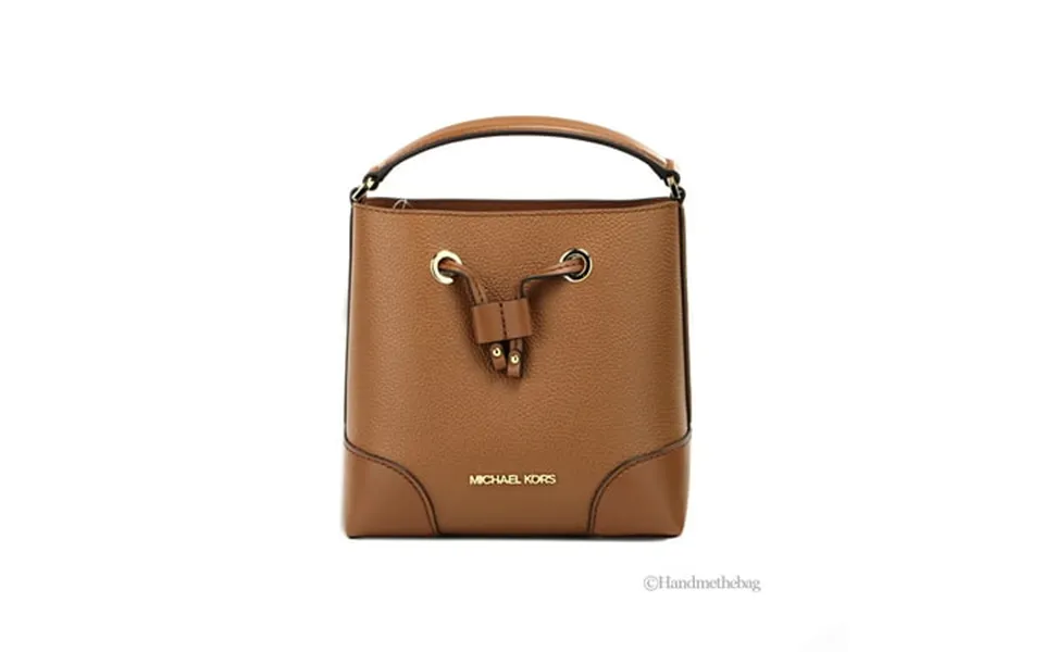Style: michael kors mercer small bucket drawstring handbag luggage material: pebbled leather features: front mk logo plate accent drawstring closure adjustable detachable crossbody strap measures:...show more