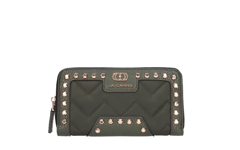 Dark wave large wallet in faux leather and fabric. Zip closure. 3 Compartments One with zip. Gold studs.