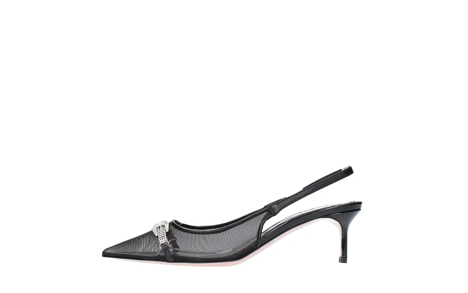 Fabric and leather slingback pump. Leather outer sole. Leather and fabric internal upper.