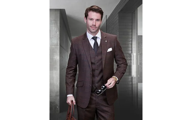 Men's 3-piece Wool Cashmere Suit Plaid Windowpane Design