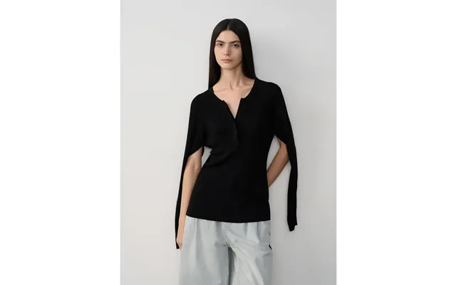 Eiffel Light Luxury Silver Silk Knitted Slightly Transparent Tie Lapel Slim Drape Long Sleeve Knitted Top - M Silver Lig