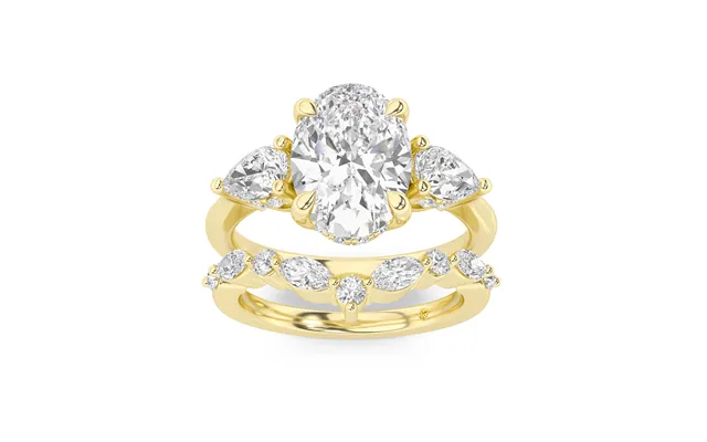 Celestia Lab Grown Oval Shaped Diamond Engagement Ring With The Angelina Wedding Band 18k Yellow Gold 3 1 2 Ct