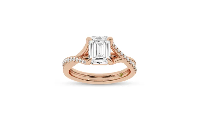 Lumen Twisted Pavé Shank Emerald Cut Lab Diamond Engagement Ring 18k Rose Gold 2 1 5 Ct