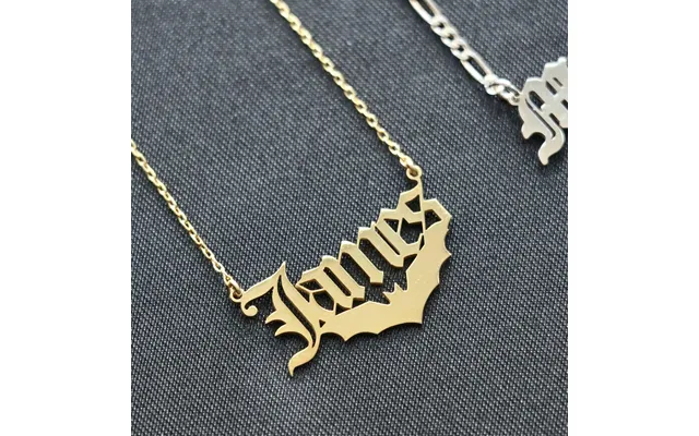 Silver Bat Name Necklace Halloween Gift - Name Pendant With Bat